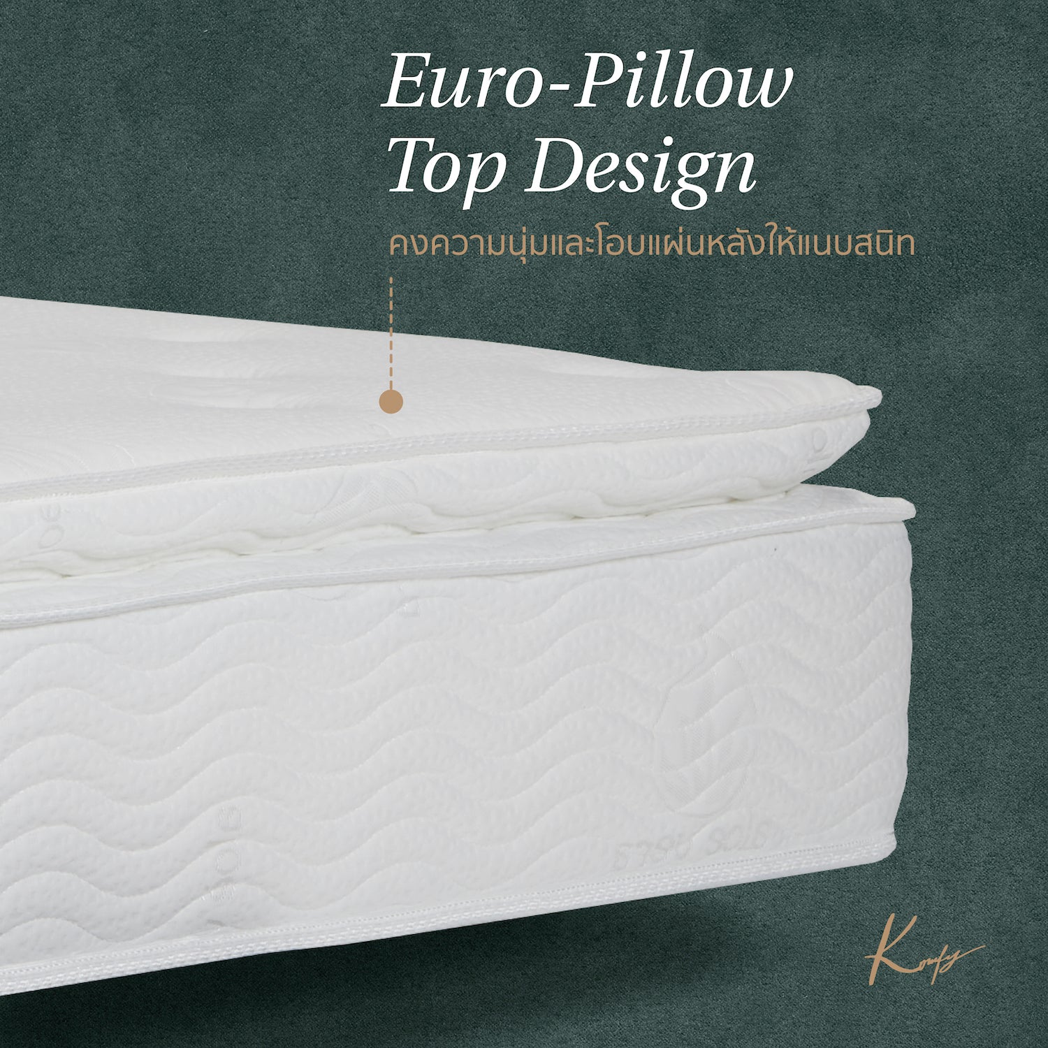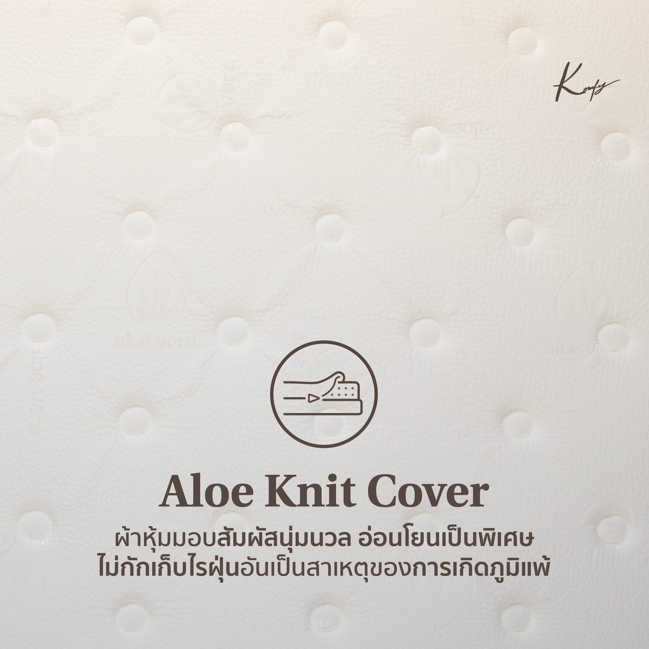1st Layer : Aloe Knit Cover – Crafted from natural fibers infused with Aloe Vera, this ultra-soft, hypoallergenic fabric is gentle on the skin, resistant to dust mites for healthier sleep environment.