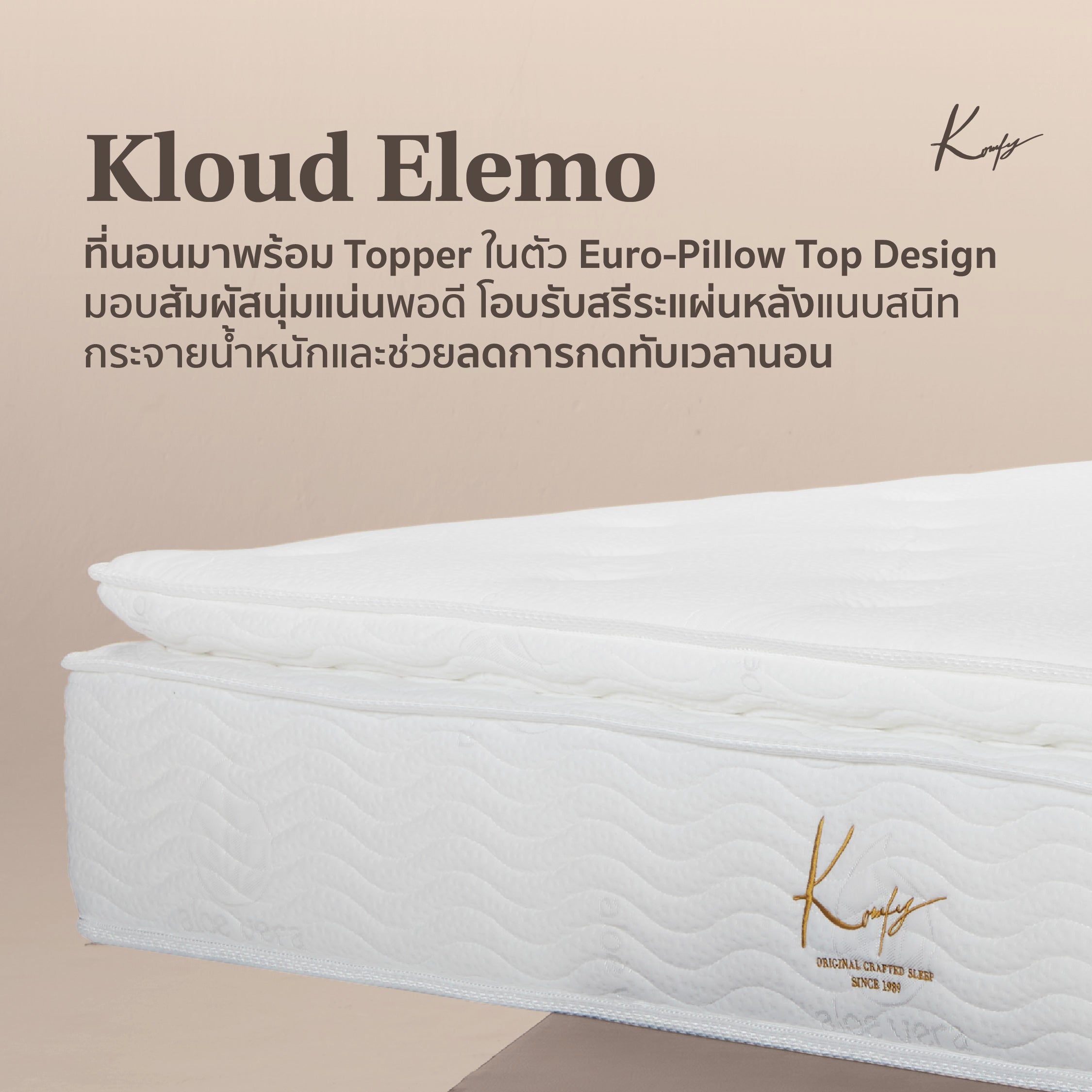 Specially for those who love the stability of pocket springs with a firm, non-sinking feel, Kloud Elemo is designed to deliver exceptional weight distribution and precise pressure relief. Featuring a reinforced support base and independently encased pocket springs, it absorbs movement and minimizes disturbances, ensuring an undisturbed sleep.The built-in topper layer contours to your body for extra comfort, easing muscle tension and reducing aches. Wrapped in a natural Aloe Knit Cover, it provides a soft, breathable touch while resisting dust mites, creating a healthier, more restful sleep environment all night long.