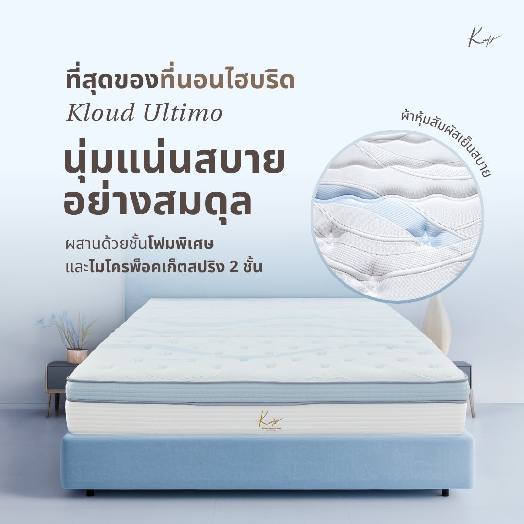 Experience cloud-like touch with firm support in Kloud Ultimo. Its multi-layer memory foam adapts to your body, relieving pressure across seven key zones for optimal comfort. Dual-layer micro pocket springs ensure superior weight distribution and motion isolation, giving you and your partner uninterrupted, restful sleep every night.
