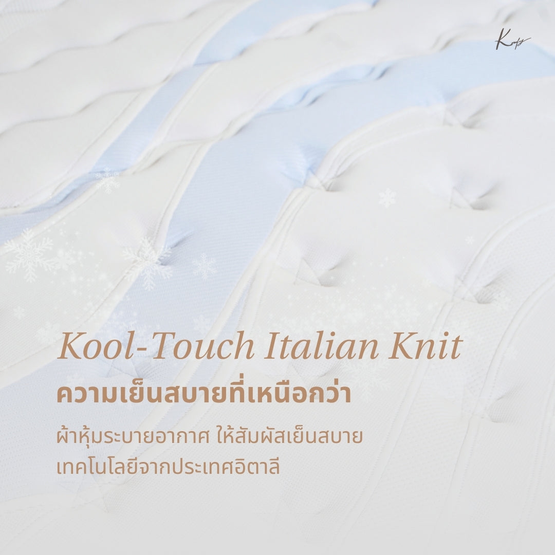 1st Layer : Kool-Touch Italian Knit Cover - A special innovation from Italy. This ultra-breathable fabric provides a cool-to-the-touch sensation, reducing heat buildup and night sweats for uninterrupted, refreshing sleep.