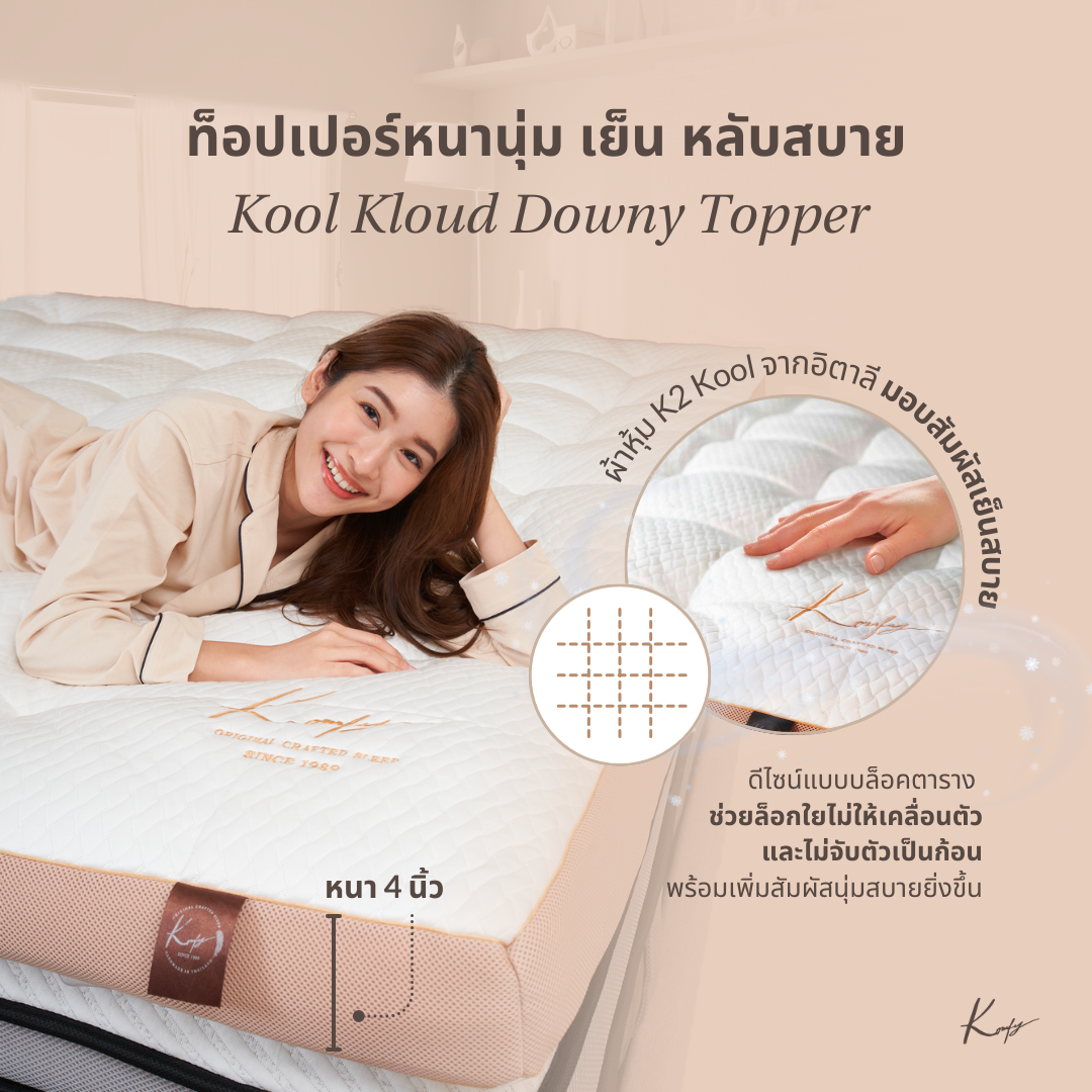 Transform your mattress into a cloud-like comfort with Kool Kloud Downy Topper. Crafted to enhance comfort with a cool, airy feel for a more restful sleep.