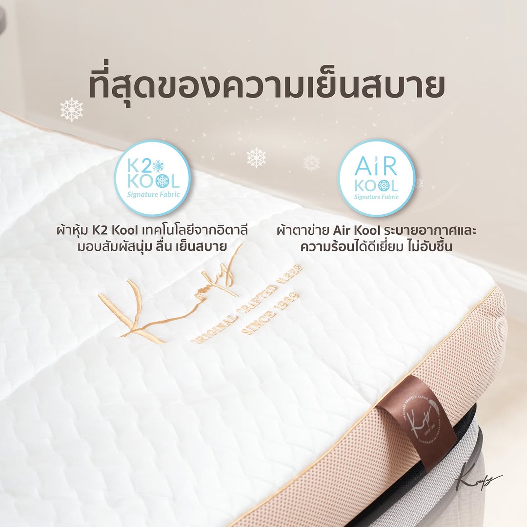 K2 Kool Fabric Cover : Silky smooth, cool to touch, and highly breathable for all-night freshness.
