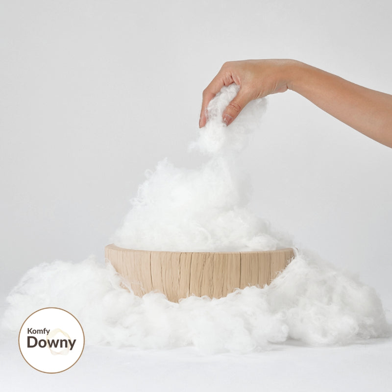 เส้นใย komfy downy ใยสังเคราะห์ พิเศษของ Komfy ให้ความละเอียดสูง ไม่จับตัวและไม่ก่อให้เกิดภูมิแพ้